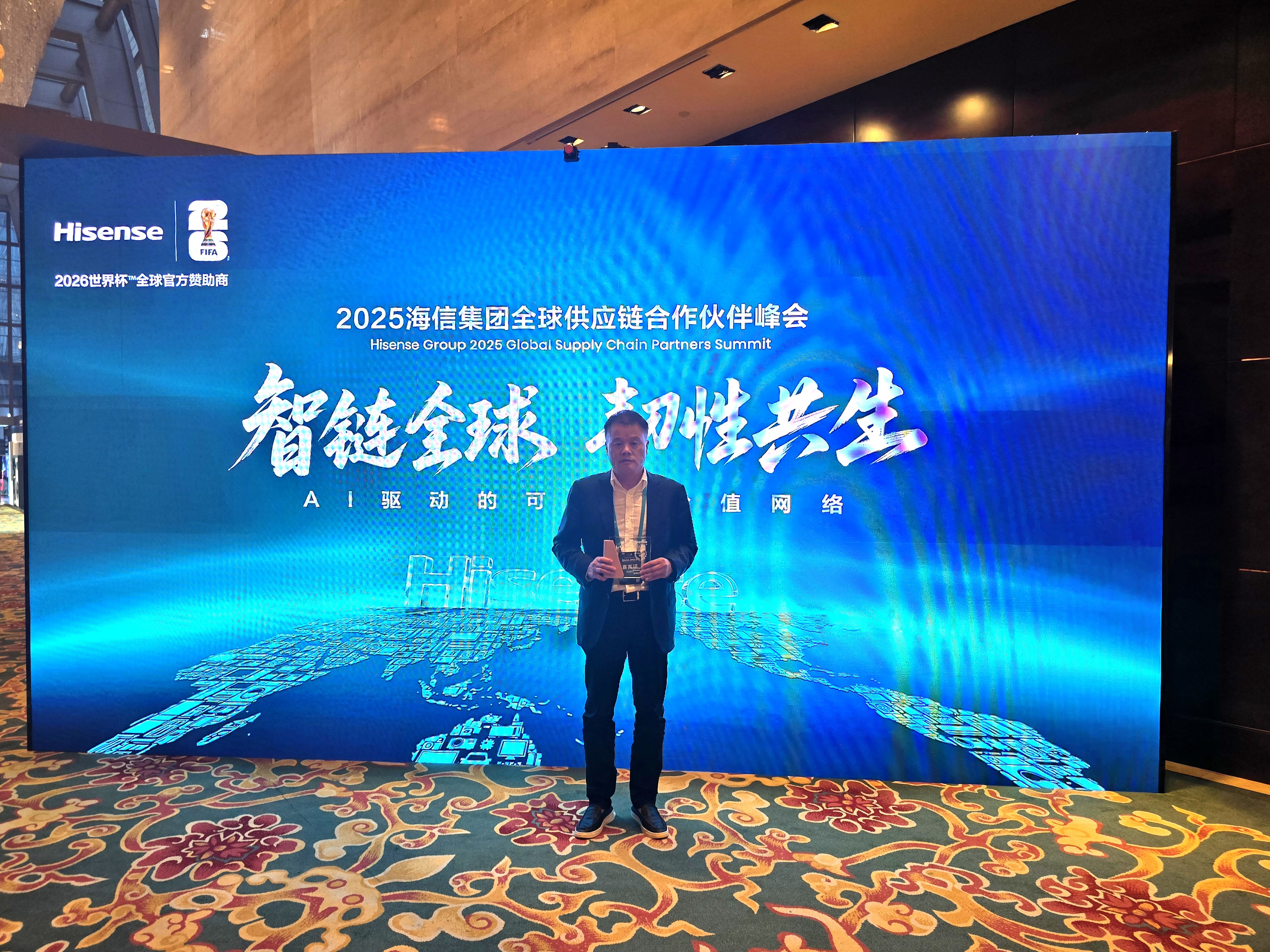 近日,我们受邀出席海信集团全球供应链合作伙伴峰会,并荣获 “全球拓展先锋奖” !这份荣誉,不仅是对我司在全球市场拓展与供应链协作中卓越表现的肯定,更是我们与海信集团携手前行、共创价值的重要见证。